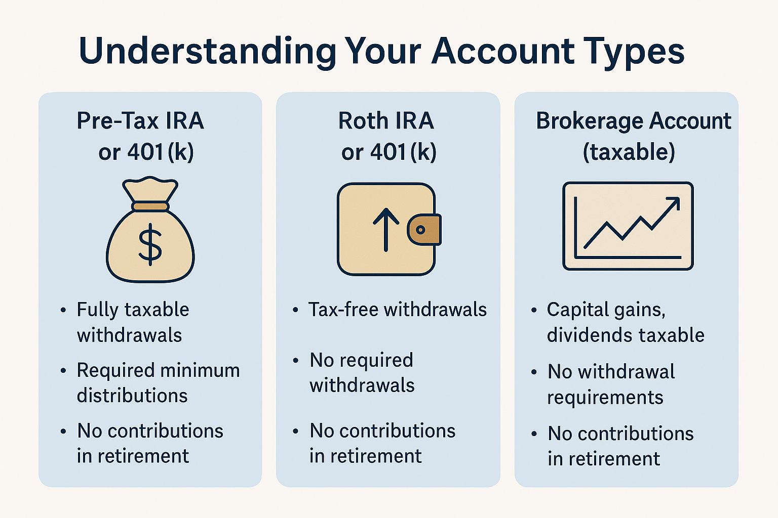 By contrast, a retiree with the same total savings but spread across pre-tax IRAs, Roth IRAs, a taxable brokerage account, and bank savings can mix and match withdrawals to manage taxes much more effectively.